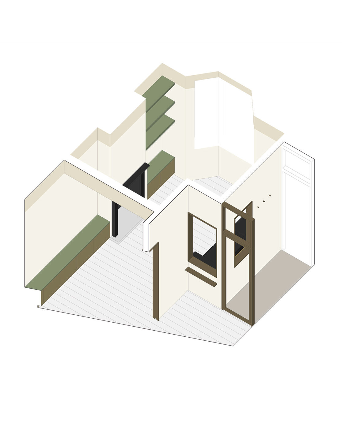 On the ground floor the front of the house was refurbished, delivering a comfortable and traditional snug. The rear of the property has been transformed with a side and rear extension, to deliver a generous kitchen and spacious living area, with large contemporary glazing to create a bright and open space. Wide glazed doors open up the back of the house, connecting to the much-treasured private garden. A contemporary oriel window is placed in the rear elevation of the house, offering a unique seat, elevated over the garden. The design of the oriel window draws light deep into the interior space.